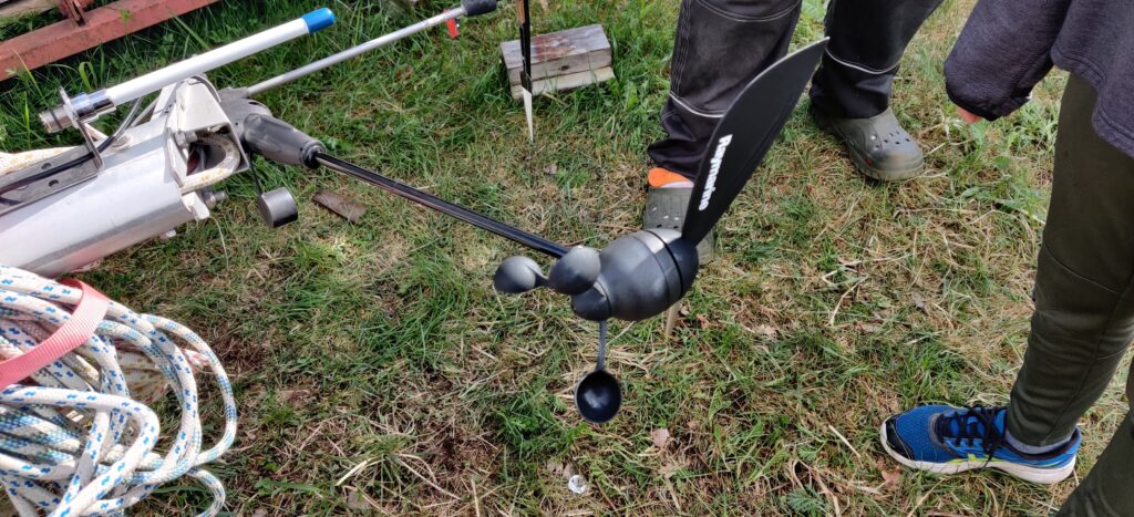 Tuulimittari: Maston huipussa oleva laite, joka mittaa tuulen suunnan ja nopeuden.