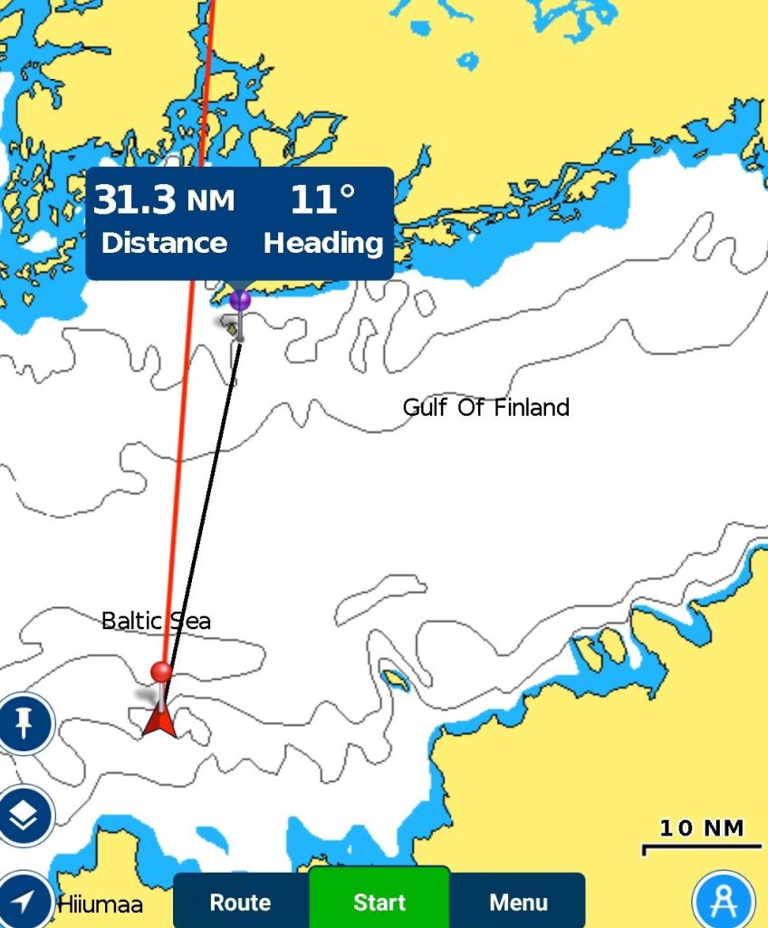 Olimme alun perin ajatelleet, että menisimme vielä Dirhamiin ja ehkä Haapsaluunkin ennen paluuta Suomen aluevesille. Sääennustus kääntyi kuitenkin suunnitelmaamme vastaan. Hyvä ikkuna ylitykselle Suomen puolelle olisi keskiviikkona, loppuviikosta tulisi kovempia tuulia ja kapu halusi ylitykselle mieluummin mukavat kuin hankalat olosuhteet.