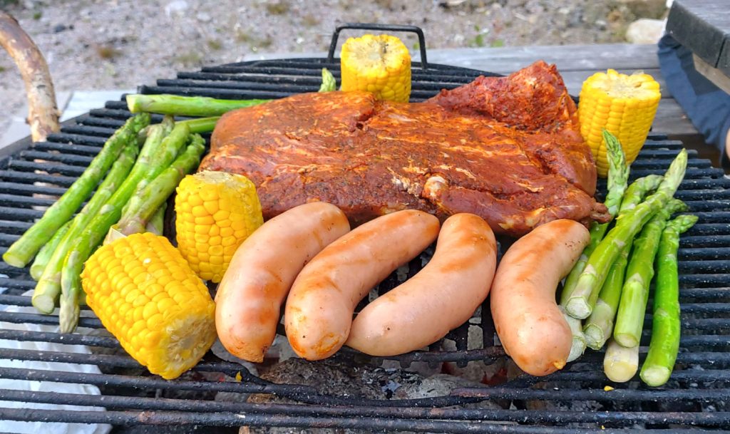 Kun olimme saaneet veneen Nauvossa laituriin, gasti E tuli melkein heti veneelle ja lähdimme koko porukalla kauppaan. Ajatuksenamme oli grillata sataman mukavalla grillipaikalla herkkuateria. Juhannuksen jälkeen hyllyt olivat aika tyhjinä, mutta saimme kuitenkin haalittua aika hyvän saaliin. Veneelle kävellessä försti lupautui ottamaan ikävämmän perunoiden keittely- ja salaatinpilkkomisvuoron veneellä sillä aikaa, kun muut laittaisivat tulet ja aloittaisivat grillaamisen. Gasti pikku-e uhrautui seuranpitäjäksi ja apukantajaksi ruuille ja ryhtyi lukemaan Aku Ankkaa veneellä. Kun grillikomppania oli kerännyt tavaransa ja lähtenyt ja försti saanut perunat kiehumaan, taivas tummeni pikavauhtia ja saimme niskaamme ukkosen ja kaatosadekuuron – venevuoro olikin tällä kertaa voittava valinta!
