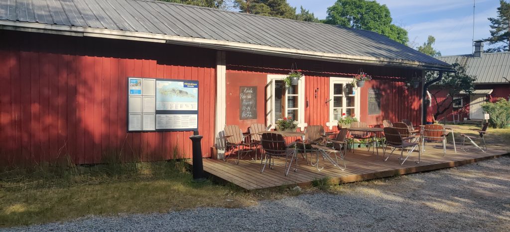 Uimisen jälkeen ripustettiin riippumatto keulakannelle. Gasti lähti tiskaamaan, kapu täyttämään dieseltankkia ja försti sai keinua kirjan kanssa riippumatossa. Pienten huoltohommien jälkeen lähdettiin pelaamaan erä mölkkyä ja muutama kierros tikkaa kahvilan pihamaalle saunavuoron alkua odotellessa. Pähkinäisten saunaa kehutaan Saaristomeren parhaaksi, eikä suotta! Löyly oli mukavan lempeä ja saunan tunnelma kodikas. Sauna nousi suosikkisaunojen listalle kertalöylyllä. Saunan jälkeen laitoimme vielä iltakaakaot ja -teet päättämään leppoisan hellepäivän.