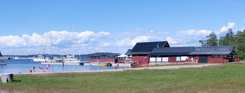 Matka eteni joutuisasti, vaikka tuuli tuli käytännössä ihan nenästä eli jouduimme kryssimään ison osan matkasta. Gastitkin heräilivät aamupäivän aikana ja muistelimme kaikki, miten veneessä oikein ollaan ja toimitaan, kun varsinaisesti purjehditaan. Vähitellen vendaproseduurit ja keikkuvassa veneessä toimiminen muistuivat mieleen. Kasnäsiä lähestyessä vanhempi gasti E alkoi haaveilla kylpylässä olevasta kuntosalista, mutta päällystö oli jo päättänyt, että menisimme Högsåran kyläsatamaan eli Rumpan barin laituriin. Olemme olleet Högsårassa usein ennenkin, mutta aina Kejsarhamnin puolella.